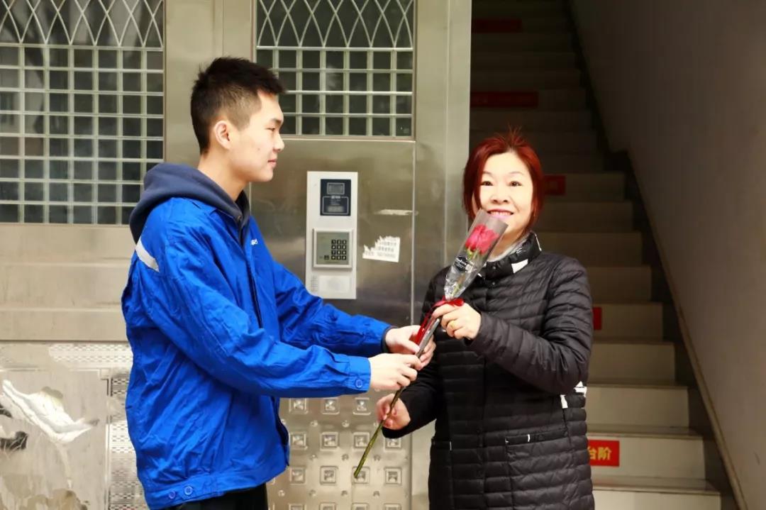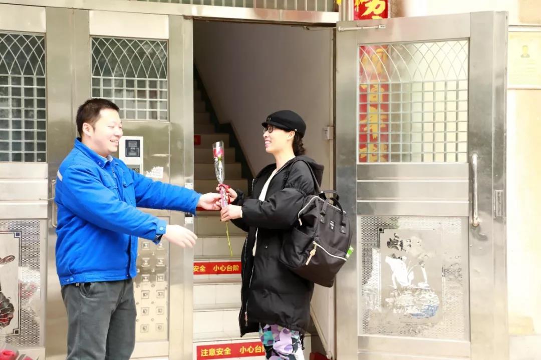 早上上班前,公司工會的小伙子們便等候在門口給各位安裝女神獻上一支玫瑰,代表公司向廣大女同胞致以節日的問候。