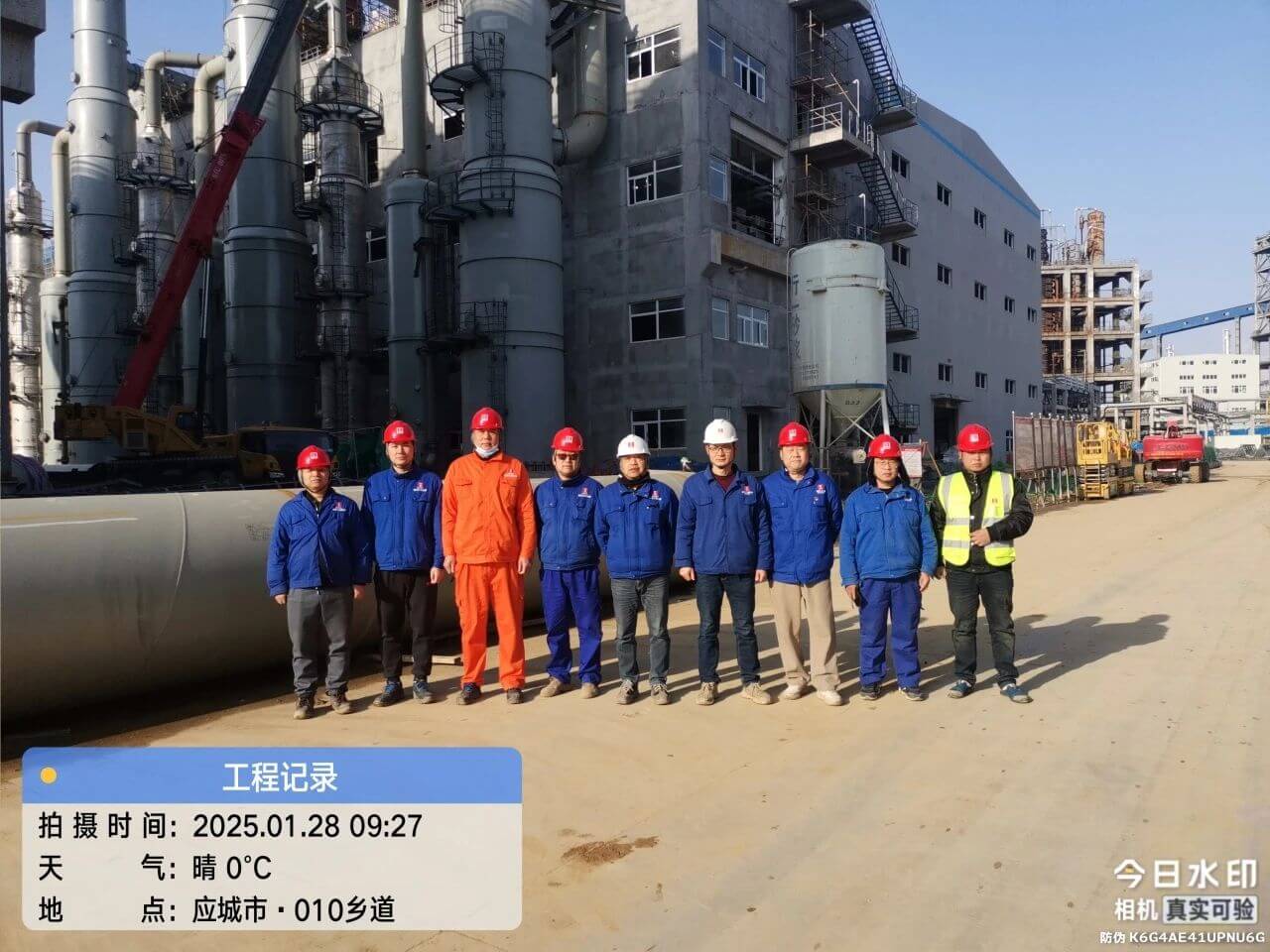 新春佳節,闔家團圓之際,湖北應城雙環熱力項目的施工現場依舊一片熱火朝天。項目施工團隊爭分奪秒,全力推進鋼結構煤斗安裝以及煙囪內筒壁保溫層砂漿抹灰工作。為了實現鍋爐早日點火,他們放棄了與家人相聚的機會,毅然堅守在施工一線。寒風吹過,臉頰被凍得通紅,但他們手中的工具從未停歇,每一次精準的操作,每一滴灑落的汗水,都是對責任的無聲詮釋,每一個堅定的步伐,每一項高效完成的任務,都彰顯著他們的使命擔當。